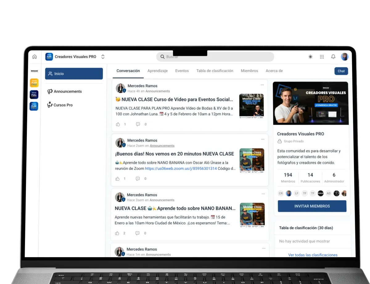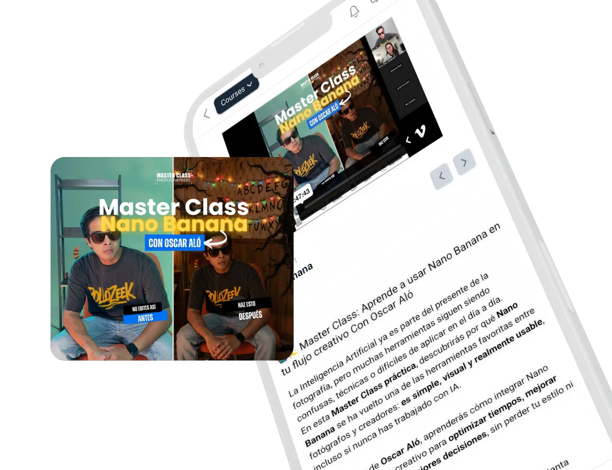 En nuestra comunidad, aprenderás flujos con IA para editar en minutos, narrativas híbridas (foto+video) y estrategias de negocio para el mercado 2026.